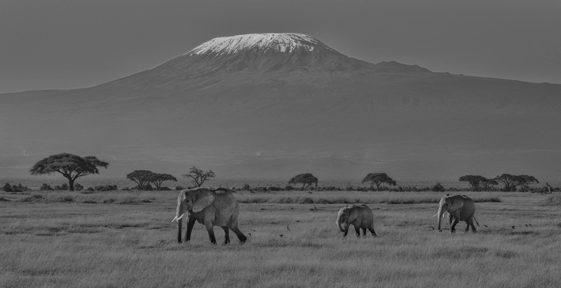 Elephants In Front Of Kilimanjaro